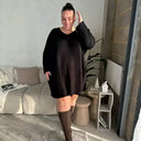 Büyük Beden Bisiklet Yaka Uzun Kollu Kısa Sweat Elbise 126443 %25